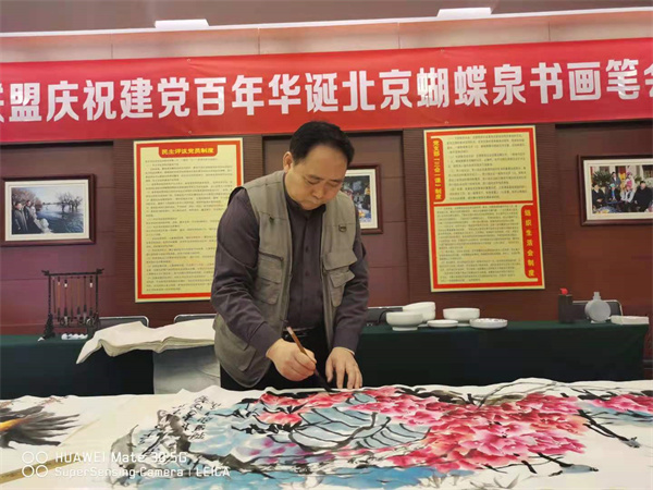 为庆祝中国共产党建党100周年,2021年4月29日上午,北京书画院艺术联盟和大理白族自治州人民政府驻北京联络处在北京蝴蝶泉宾馆联合举办“北京书画院艺术联盟庆祝建党百年华诞北京蝴蝶泉书画笔会”。