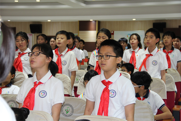 火红的队旗高高飘扬,指引我们前进的方向,鲜艳的红领巾系满理想,载着我们勇敢前进。在这个属于孩子的节日里,六年级同学向五年级同学授予代表着成长的大领巾,人大领巾大!人大责任大!人大志向大!