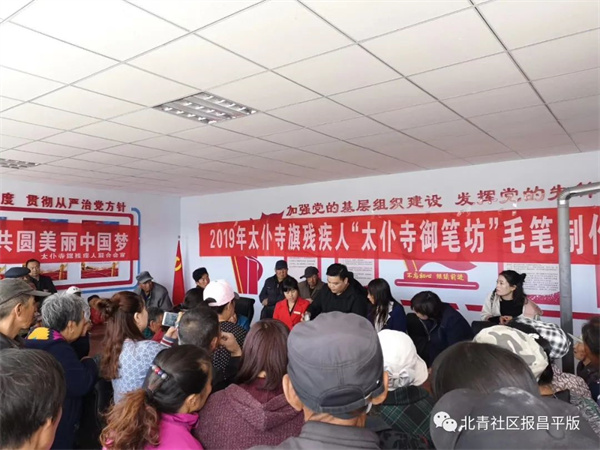 2019年5月,御笔坊积极开展技术扶贫,为昌平区对口扶贫地区:尚义、太仆寺旗、阿鲁科尔沁旗举办毛笔技术培训班,累计培训共360名残疾人。毛笔制作过程绿色环保,劳动量较轻,经过短期培训即可上岗,特别适合残疾人就业。