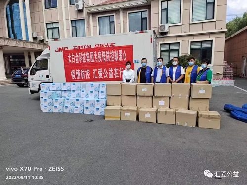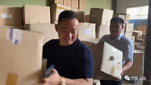 9月11日上午,汇爱公益把500套医用防护服、40箱矿泉水送到了通济新区管委会;9月11日下午,汇爱公益把200套医用防护服、40箱矿泉水送到了潮海街道办事处;汇爱公益副主任单位“大白金科技集团”杨立涛捐助医用防护服800套;汇爱公益队长单位“御意居装饰”徐昌捐助消毒液10箱。