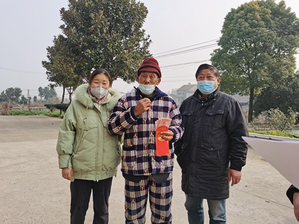 辞旧迎新,欢度元旦佳节,在兔年即将到来之际,2023年1月3日,湖北衡安公司董事长刘柳委托张华荣、龚佩佩与荆州松滋市沙道观镇大兴垸村委会志愿者组成慰问组,将每位500元慰问金送到十一位孤寡、失独老人手中。
