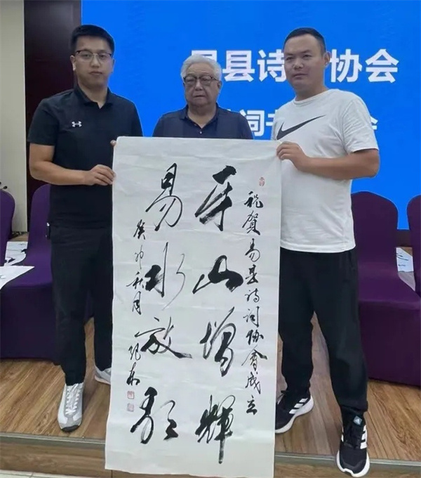 会议间,展示了李栋恒、范印华、王兆海、王登平、孙之贵几位老首长送来的墨宝,对易县诗词协会的成立表示祝贺、给予鼓励。