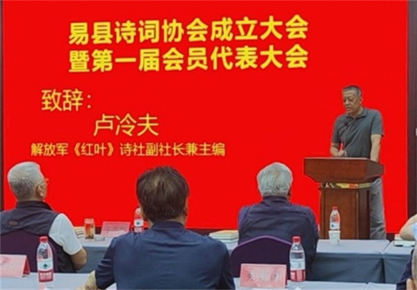 解放军《红叶》诗社副社长兼主编卢冷夫送来了200多册诗词书刊,他说“易县人杰地灵,是我向往的地方”。他作诗《卜算子•贺易县诗词学会成立》