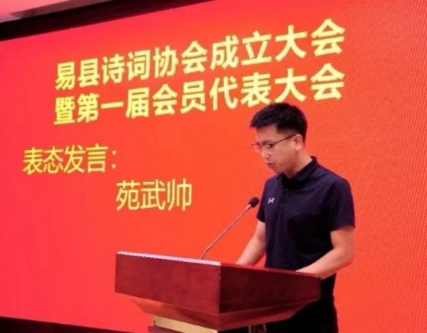 会议审议通过了《易县诗词协会章程》、《易县诗词协会成立大会选举办法》。采用举手表决的形式,通过了易县诗词协会会长、副会长、秘书长的人选。苑武帅为会长、延硕、刘芳、张志华为副会长、孙冬梅为秘书长。会上聘请苑建国为总顾问、郑德才、延常青为顾问。 当选的会长苑武帅表态发言。