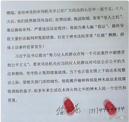 习近平总书记提出“努力让人民群众在每一个司法案件中都感受到公平正义”,要求司法机关应当回应人民群众对司法公正公开的关注和期待,坚守防止冤假错案底线,当下也正值全国上下政法系统整治之际,望相关部门深挖细究,彻底揭开榆林特别是神木政法系统腐败黑暗的盖子,给多年来生活在水深火热之中的神木人民一个交代和答复。