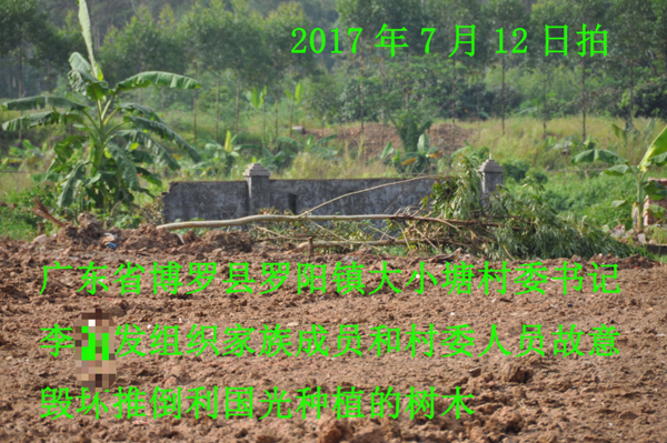 2017年7月8日和9日,以李某发为首及其团伙成员几十人再次将利某光种植在富利公司门口的鸡蛋花树和非洲茉莉花树强行盗走(过程有监控视频),另将近百棵桉树推毁破坏,又将富利公司门店的阳光板强行拉走,再将利某光养殖了5年的鱼塘挖沟排水将鱼抢走,导致富利公司直接经济损失37.29万元(附各项被损害的明细单)。以上多项经济损失,于2017年9月11日在博罗县信访局,由当地多部门相关人员与富利公司进行协调。在协调会当中,已明确赔偿方案,但至今一直不但没有赔偿,相反,在某些人的支持下李某发接二连三破坏富利公司财物和土地。
