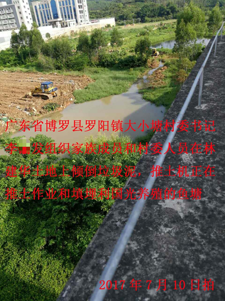 2019年12月28日至2020年元月1日,以罗阳镇某领导和不明真相的博罗县粮食局为首组织人员大规模将聚有公司土地用大型挖机毁坏,并用大型非法营运泥头车运输垃圾和建筑淤泥填埋。该过程有视频、相片、报案回执(视频过程施工负责人和粮食局某工作人员供述是镇里指使要求施工)。
