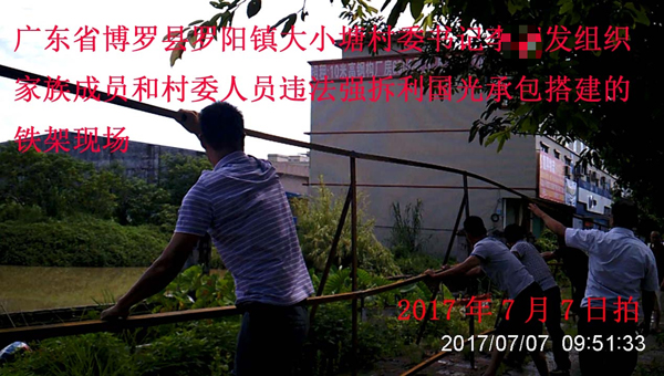 “大小塘村前任支书张某强、前任村委会主任李某明和现任支书李某发依仗权势,目无法纪,组织团伙多次故意毁坏我两家公司的财产财物,欺行霸市,强抢工程,造成我两家公司的经济损失300多万元,严重损害了民营企业的合法权益。”近日,位于广东省博罗县罗阳镇大小塘村的两家民营企业——博罗富利输送机配件有限公司负责人利某光、惠州市聚有实业有限公司负责人林某华联名致函上级有关部门,反映长期受到大小塘村某些村官敲诈和欺压的问题。