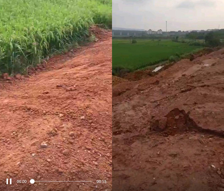 9月1日,沪昆高速进贤出口沿线正式动工。经过三天的施工9月4号未经本村允许,乡里指挥施工方强行强占包家村未征用之地,强行推到隔离围墙,强行掩埋即将成熟的水稻,是法律允许如此作为还是背后的保护伞执意为之,对老百姓的利益漠然视之,打着建设发展的旗号克扣征收的标准以少征多占为目的。现在以沪昆高速出口沿线934乡道加宽工程为由,对包家村进行强制拆迁,把即将收成的水稻肆意推毁。