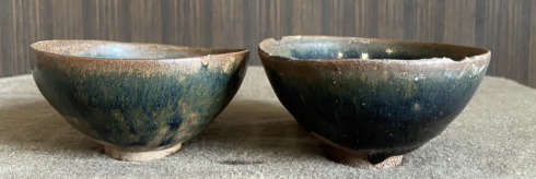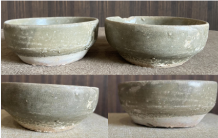 底部有明显的旋纹——制瓷工艺已有了显著的进步,从原始的泥条构筑发展为半机械化生产;器物上有施釉工艺——较更早的原始陶器有了实质性的改变;器物形状为墩式碗,没有唇口——从陶器发展到半陶半瓷。这个碗基本具备了现代陶瓷茶碗的全部要素。