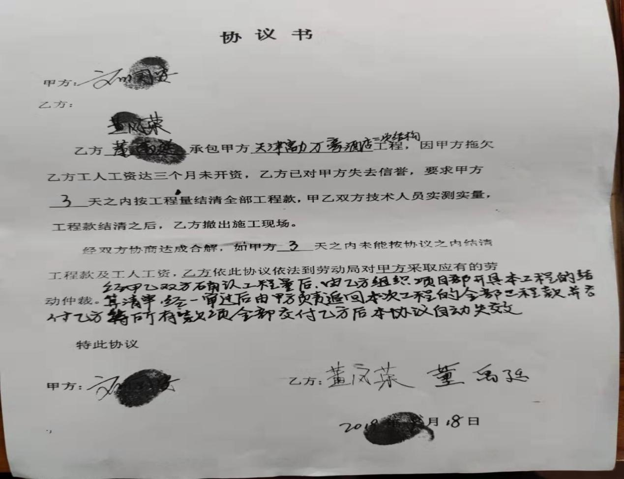 如今,董凤荣及被拖欠农民工工资的50余名农民工,正在天津市第一中级人民法院进行上诉,董凤荣及50余名农民工相信党、相信天津市第一中级人民法院法官的党性原则和法律专业素养,一定会给党和底层农民工交上一份合格的答卷。