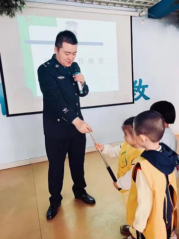 在安全教育小课堂中,民警针对小朋友的认知和接受能力,运用通俗易懂的语言,从我们身边有哪些坏人、不随便跟陌生人走、不吃陌生人的食物、坏人惯用的伎俩及道路交通安全等方面,进行“防拐骗、防走失、防事故”安全教育宣讲;之后,民警采取寓教于乐的方式,向小朋友们展示日常巡逻工作中常用的单警装备,让小朋友们上前体验单警装备的使用,满足小朋友们的好奇心,增强小朋友们的自我保护能力和保护意识。