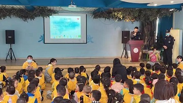 “爸爸、妈妈的电话,家庭住址,车牌号以及一些有助于联系家人的电话要牢记。公安报警110,消防报警119,危急病人救助120。”民警侯淑涛在宣讲中让小朋友们熟记一些重要号码和地址,帮助小朋友在重要关头学会求助、学会自护。