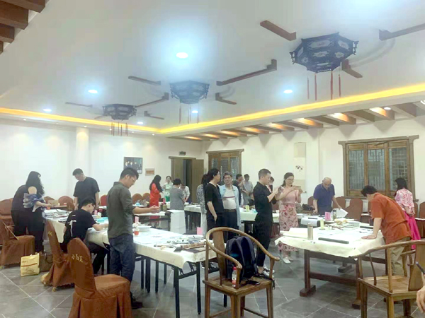 中国美术导报总编胡玉宝首先在开幕式上致欢迎辞,副总编曹顺元主持了开幕式,杭州小白菜文化园馆长陈海友介绍了小白菜文化园创办历程和文化交流活动情况。活动现场由浙江省级机关书画家协会盛长荣主席、西湖名胜区钱塘书画院院长姚锦标以及中国美术学院一批青年艺术新秀挥毫泼墨,丹青颂党恩,书画寄深情。一幅幅精美的书画作品充分表达了书画家们对生活的热爱、对幸福生活的美好向往,现场的多为工作人员也在忙碌中享受着翰墨绽的芬芳。