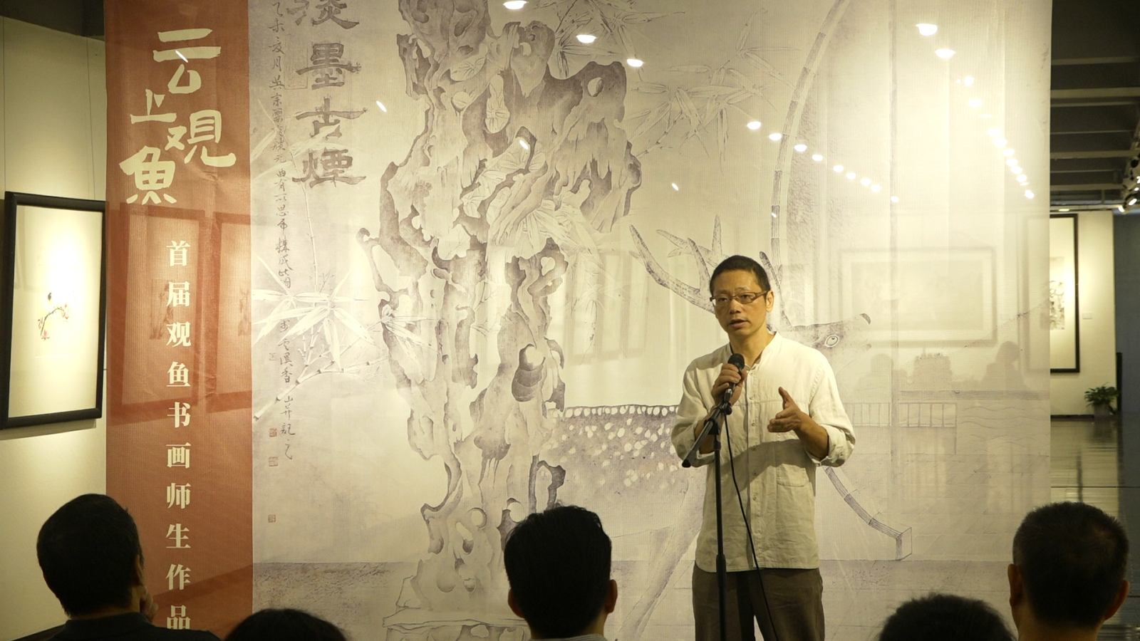 观鱼书画院把首届展览放在恒庐美术馆是对我们的信任。我们办线上教学机构的线下展览还是第一次。我们越发感受线上教育越来越壮大,小升初都要把艺术考试作为一部分内容,现在越来越重视美育教育。观鱼这样的书画机构由专业的美院老师来执教一定会做得越来越好的。文化是人类精神上的需求,观鱼的做法正好是这样实践的。零基础的学员能画成这样,体现观鱼的教学成果是非常好的。我很佩服这些学员。祝贺大家能在观鱼这个平台取得这样的成绩,祝愿大家不断进步。