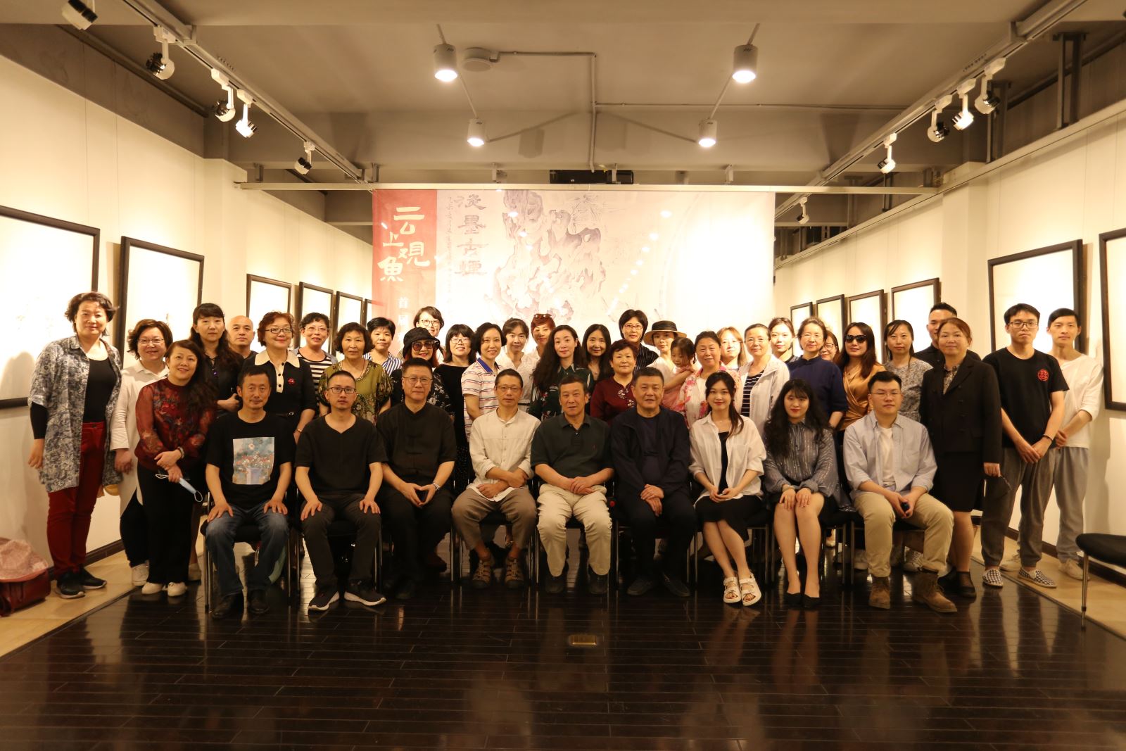 云上传佳音,观鱼结硕果。5月29日下午,观鱼书画院首届师生书画作品展在杭州恒庐美术馆顺利开幕。浙江现代画院院长、原中国美术学院副院长、著名书法家高法根,浙江大学艺术学院中国画教研室主任沙伟,恒庐文化传播有限公司总经理、收藏家、评论家席挺军,一笔画会创始人、指墨画家王群应邀出席开幕式并致辞,他们高度评价了观鱼书画院网络书画教学的成果。观鱼书画院书法老师千俞、国画老师晚黎、学员代表若文分别发言。观鱼书画院国画教研组长吴宗霖致答谢词,观鱼书画院院长夏槿主持开幕式并宣布画展开幕。