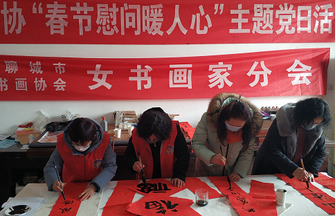 近年来,山东省聊城市市直书画家协会大力弘扬传统文化,发扬民族文化魅力,坚定文化自信,让群众在春节来临之际,感受墨香带来的文化芬芳,感受党和政府的关心和温暖,带领群众凝心聚力共发展。(山东省聊城市市直书画家协会)