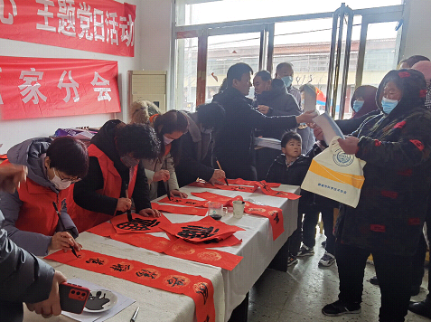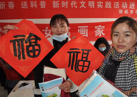 山东新闻网:(许文清杨慧丽)2022年1月24日,终于结束了雪花飞舞的天气,但依然北风萧瑟,寒气逼人。清晨,山东省聊城市市直书画家协会女书画家分会便随科委“迎新春送科普”的大巴车,开进阳谷县寿张镇双庙杜村开展“送福字庆新春”活动。