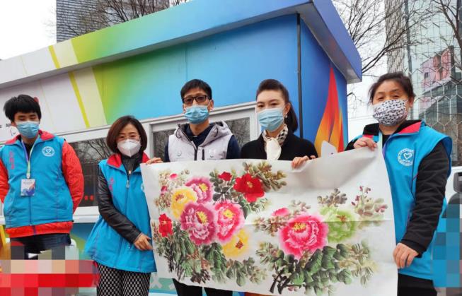 中国东方文化研究会对外经济文化工作委员会常务副会长李向阳向三里屯城市志愿者表示慰问并赠予一幅国画作品。