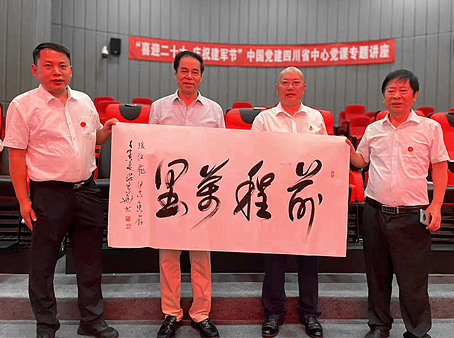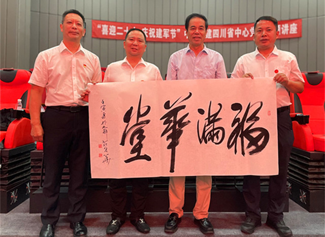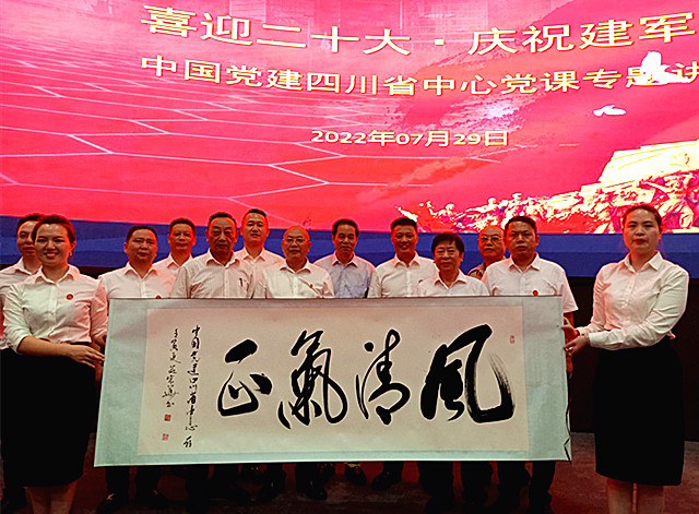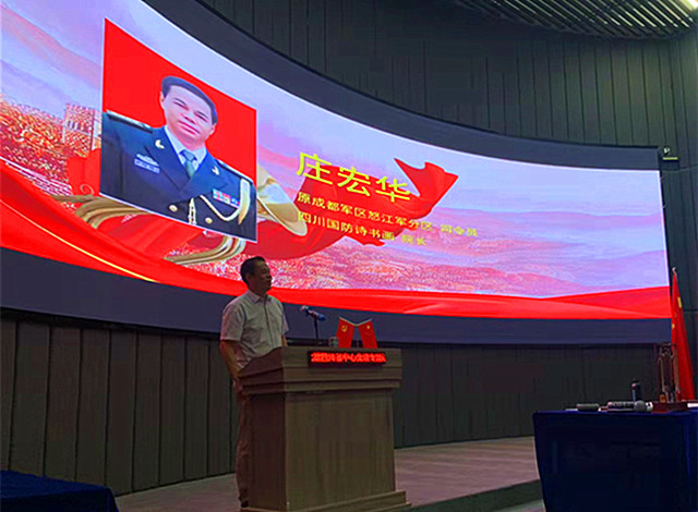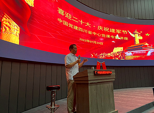 本网2022年7月29日四川成都讯 7月29日,由中国党建四川省中心举办的“喜迎二十大 庆祝建军节”党课专题讲座在四川安全宣教馆隆重举行,本次讲座的主讲人是原成都军区怒江军分区司令员、四川国防诗书画院执行院长庄宏华。中国党建四川省中心主任朱顺利、四川安全宣教馆馆长阳运志,以及有关单位的党员、干部代表约50人聆听了当天的讲座。