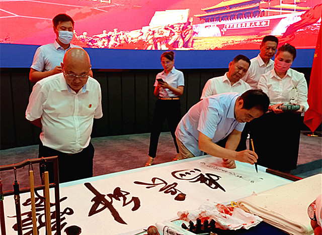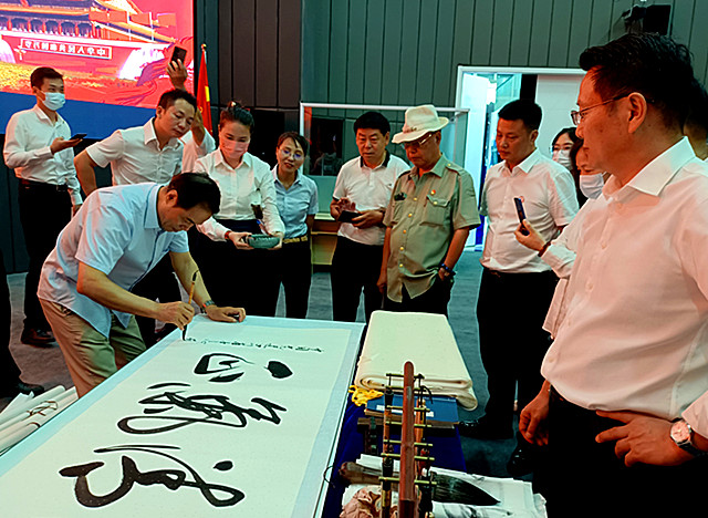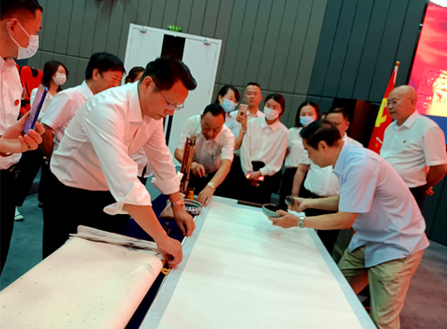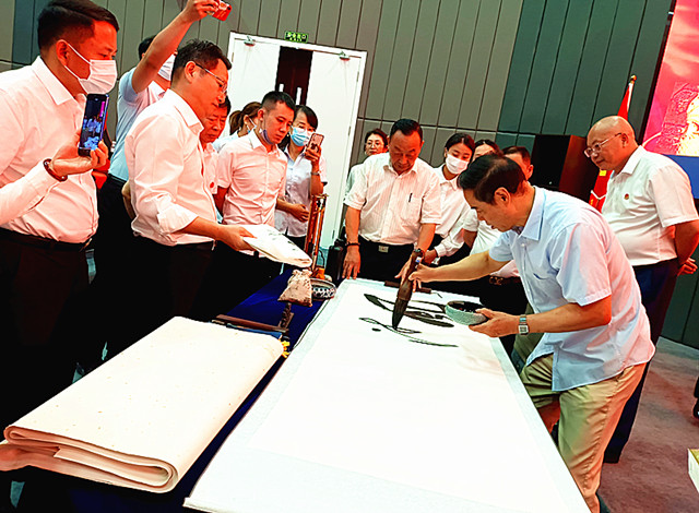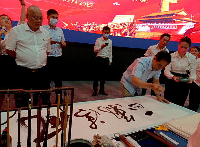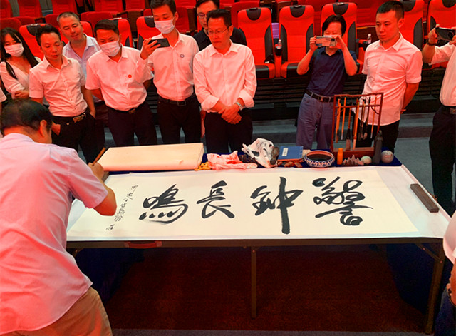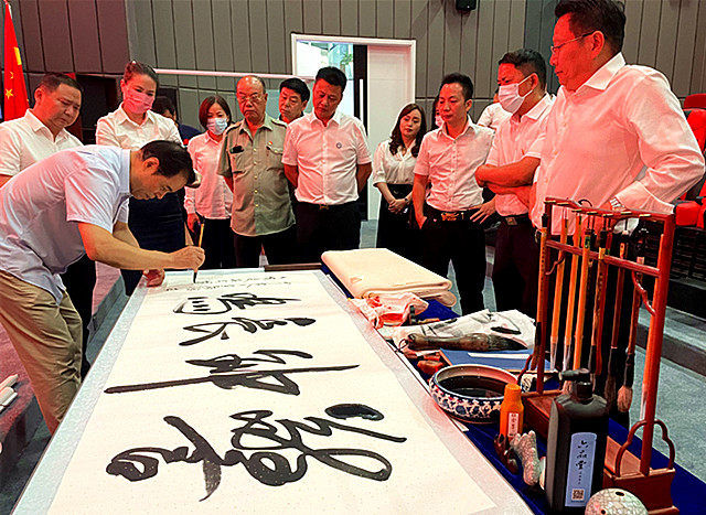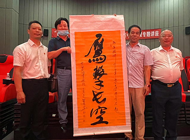 当天,庄宏华院长还不顾刚做完长达三个小时讲座的辛劳,更来不及吃午饭和午休,竟一鼓作气地为前来聆听讲座的嘉宾们现场创作了“永远跟党走“、”“风清气正”、“警钟长鸣”、“鹰击长空”、“前程万里”等数十幅技艺精湛、意涵深远的书法作品。嘉宾们更是为庄院长笔走龙蛇、行云流水、笔精墨妙、神妙绝伦的高超书法艺术深深折服。大家交口称赞,钦羡之语不绝于耳,溢美之词无以复加,以至于庄院长被一波又一波的,为能求得一纸墨宝的热情书法爱好者们簇拥着,长时间脱不了身,差点误了食堂的午餐,最后只得答应“饭后继续”才罢……(记者 刘昕 现场报道)