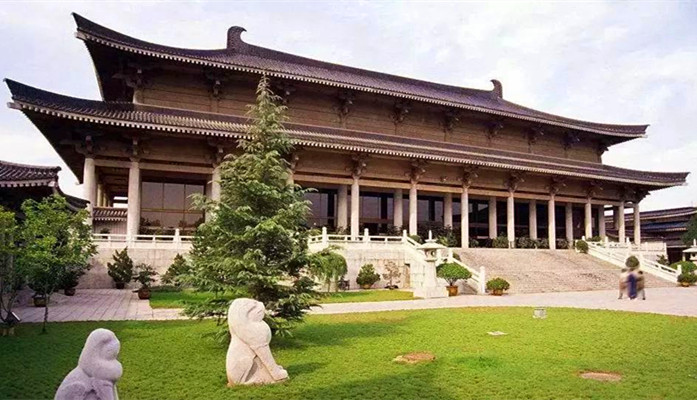 张锦秋设计的陕西历史博物馆是一座具有浓郁民族特色的现代建筑,其传统与现代的结合是多层次的。在建筑设计上有的“寓古于新”,有的“寓新于古”,有的“古今并存”。室内设计采用“寓古于新”,起到新中含古,似古又新的效果。如序言大厅选用中灰色镜面花岗岩石墙和地面,本色铝合金悬挂式覆斗形组合吊顶。又如博物馆大门设计,采用不锈钢管与抛光铜球组合成空透金属大门,其设计理念来源于传统铇钉大门。“寓新于古”可从预制受力构件上见到端倪,造型简洁的大屋顶下的椽条、支撑屋檐的斗拱,体现出唐代及现代建筑共同追求艺术、功能与结构的高度统一。“古今并存”从采用现代化的建筑构件与材料中呈现,例如许多不开窗的墙面安装四五米高的大型预制板。这样“三位一体”的设计思想在张锦秋的工作中贯穿始终,她坚信,对中国建筑传统和现代需求理解越深,两者的结合点层次就越高,所创作的建筑就会越新颖、醇厚、雅俗共赏。