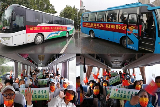 秋雨绵绵,挡不住敬老享老的热烈激情。红旗摆动,一路欢声笑语,飘扬在前行的路上。
