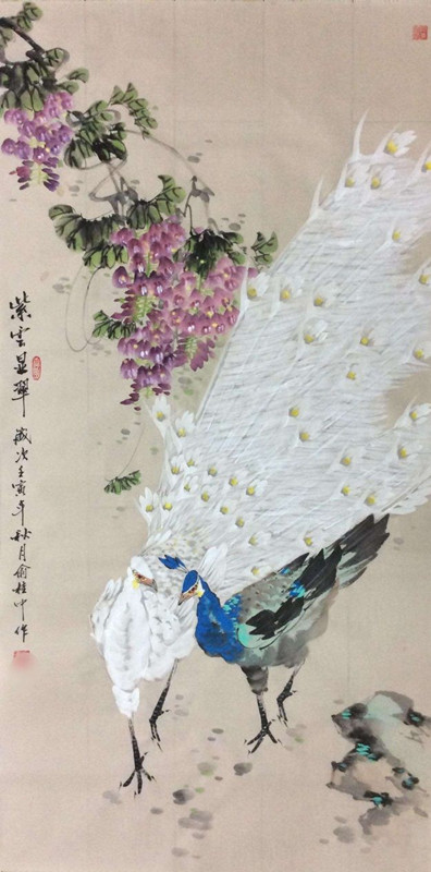 俞桂中老师工笔精致经典,写意酣畅淋漓,花鸟的融和富有新意,是奔放与精微的结晶。