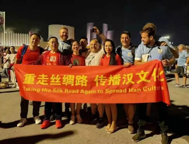 紫荆卫视 陕西特派记者张钰琀 报道:近日在卡塔尔世界杯期间,汉中市工商联副主席、汉中市球迷协会会长、世界网红、球迷王子李强,在观看赛事间隙,极力在卡塔尔寻访汉中籍汉人汉商及我国留学生、公务人员,推介汉中、宣传汉文化,并为汉中市正在筹建的汉商总会“招贤纳才”,助力促进家乡发展。