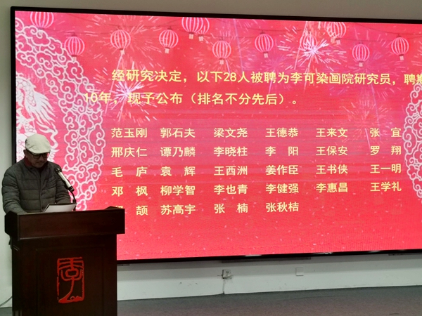 李可染画院秘书长李九红宣读《关于推选公布李可染画院2022年度艺术家的决定》