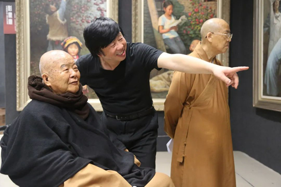 接引四海八荒良缘,淬炼民众创造精神。这就是这座位于李自健美术馆“馆中之馆”中的星云大师书法馆的建立宗旨。进入肃穆庄重的馆场,我的心被一种巨大的力量牵引着、裹挟着、激荡着。端正厚重的墨宝,琳琅满目的典籍,让我心生敬重。这里的氛围和气场成为了大师遗爱人间的最好依托。我们海外作家团所有成员,感慨万千!在我们心中,星云大师的的确确是一位思想家。他在尘世间九十余载为其思想所奉献,展示出顽强人格在西方世界的坎坷命运。而同样没有近似绝尘的孤寂体会,大艺术家李自健也接不上深刻灵魂领悟的火种,更没有这座奉献给祖国和家乡人民的艺术宝库!
