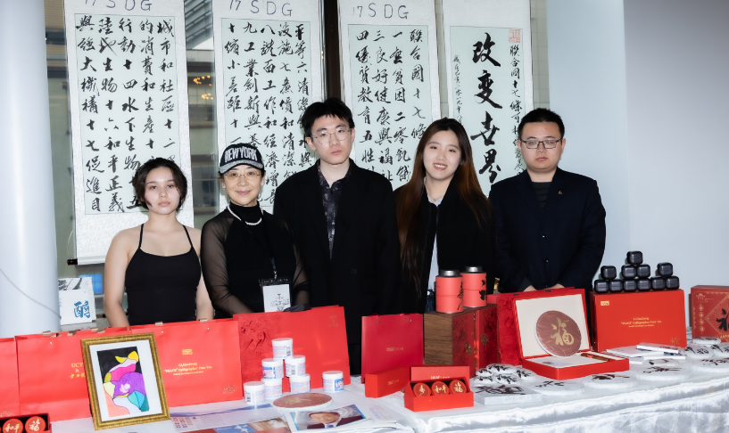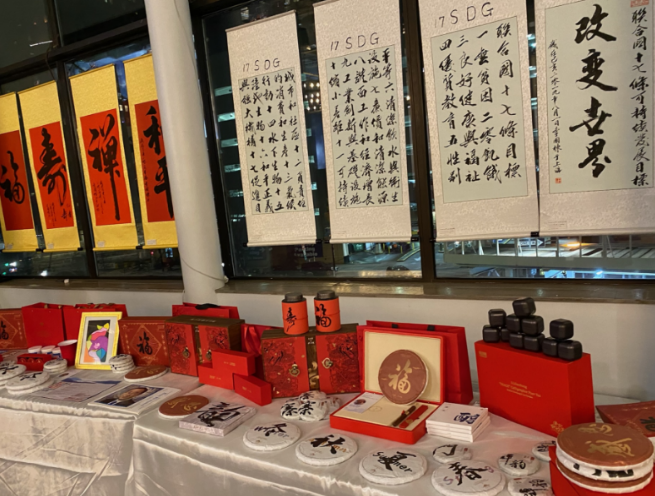 此次时装秀的最大亮点为李国栋书法促和平茶的元素完美的融入到了表演中。身着书法旗袍与唐装的超模们在中华传统民乐的配合下缓缓走上台时,手持上面印有不同设计款式的“李国栋书法促和平的普洱茶”,成为时装秀中一道与众不同的亮丽风景线。据悉,李国栋书法曾在联合国进行书法展览展示117次,也被联合国首脑会议授予和平大使称号。这些茶品皆由来自中国云南西双版纳的著名茶叶品牌老刀号提供。此次老刀号携手著名书法家李国栋教授共同出品书法茶在时装秀上亮相,不仅旨在宣扬联合国可持续发展目标及中华书法与茶文化,还传达了希望有更多人养成饮茶的习惯,保护身体健康的美好祝愿。此外,老刀号和李国栋教授选择在茶饼上印有“春”,“夏”,“秋”,“冬”等书法字样,也是希望大家可以加强对气候变化的关注。如今,全球变暖已开始逐渐威胁人类的健康和生态的平衡,老刀号和李国栋教授共同希望呼吁全人类保护地球,向一个更可持续发展的社会努力前行。 UCT国际文化发展中心还在秀场的一侧展示了更多来自李国栋教授的墨宝及书法和平茶,吸引宾客纷纷驻足观赏。