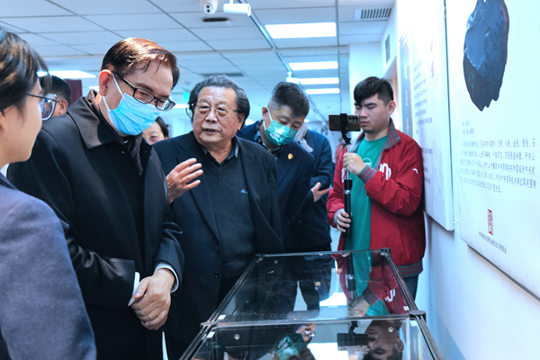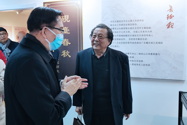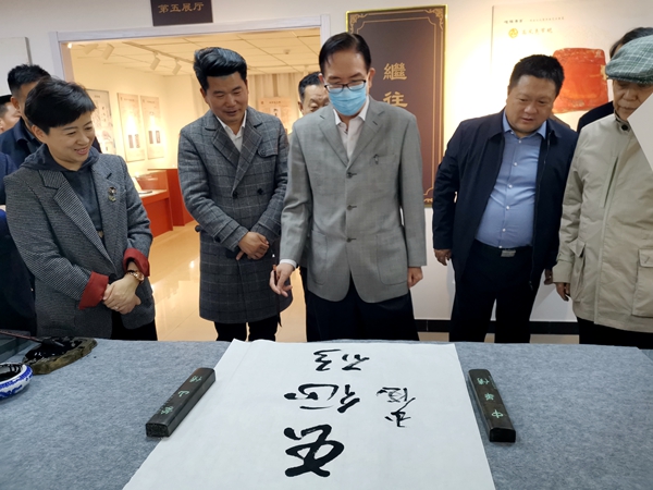 北京砚台博物馆展览现场,长征砚主题创作展得到了与会嘉宾领导赞赏,中华炎黄文化研究会会长李玉赋欣然为长征砚题词,给长征砚主题创作工程团队全体组员以莫大的鼓舞!(摄影/于江)