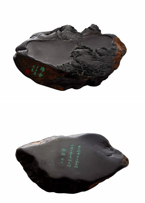 亚太地区手工艺大师黎铿与国家级非物质文化遗产(端砚制作技艺)代表性传承人杨焯忠联袂创作雕刻