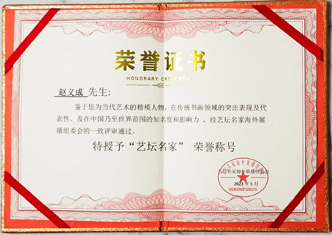 赵义成现为山东省书法家协会会员、香港文联书法家协会会员、山东真卿书画研究院院长、中国书画家协会名誉副主席、北京当代美育艺能教育科技院副教授、中外酒文化协会诗书画委员会常务副会长、临沂市道家书画院副院长、临沂市王羲之研究会会员、中国文化名人诗词书画研究院院士、中国书圣文化网签约书法家、中国东夷书画研究院特聘书法家!是一位深受业内外喜爱的艺术家!如果您期望和赵义成先生交流请致电 13371267189、16509265678或者添加其微信 16537669789。