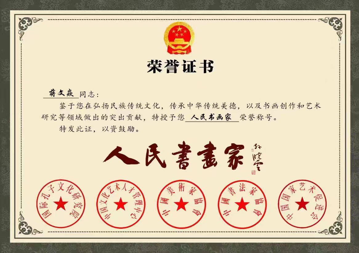 蒋文焱,原名蒋文化,号惊天居士,皈依法号释能文。自幼喜爱书法初学颜、柳贴,后习二王、孙过庭、米芾、赵孟頫、张旭、王铎等书法名家。现任中国青年书画家艺术研究院常务副院长,中国华佗书画院副院长!环球华人爱心书画家协会常务副理事长!河南广播电视台《中原视角》栏目组主任记者!中国实力派书画家!国家一级书画师!荣获中国校园优秀书画名家!环球华人爱心公益艺术家!十佳公益书画家!被中央文化部《追梦中国》大型文献一书和河南广播电视《文化中原》做专题报道!作品《沁园春“雪》荣获中欧文化交流匈牙利书画邀请展一等奖!作品《念奴娇追思焦裕禄》在2019年中国品牌春晚获得金奖!