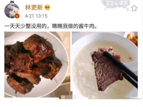 接着林更新晒出了自己做的酱牛肉,这粉丝们应该会夸了吧,但是别人关注的点在盘子上。