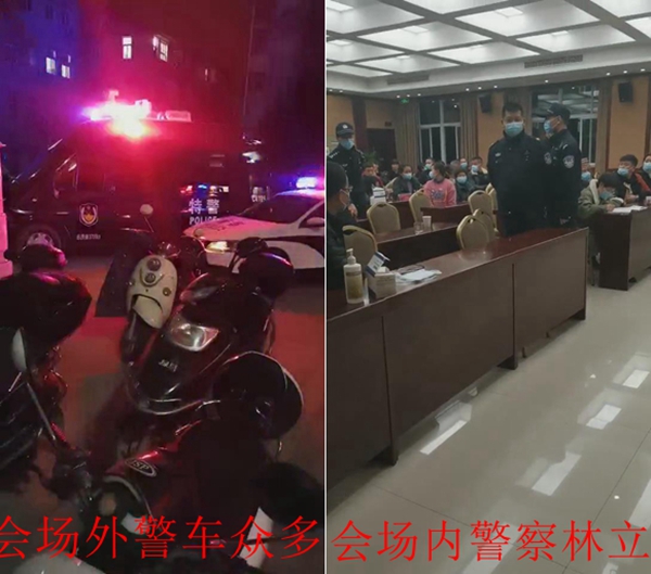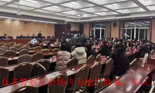 以权谋私、居心叵测的叶兆盖(村老干部、原老村长)与其子叶森良明知“一房两卖”既违法又违规,为了达到以合法的形式掩盖其非法的目的,强行通过“村民代表大会”以打压村民,并杜绝村民的正当依法维权之路,竟通过街道办事处的党工委书记胡益智之手,一方面打招呼,要求公安派出所和特警违规出警,如临大敌抵达会议现场;另一方面,他们特地要求我村村民代表们于2021年1月26日异常地故意前往北城街道机关食堂的二楼会议室,异地召开“村民代表大会”,在暴力高压之下,随心所欲地进行“一房两卖”和典型“双重标准”的安置房,违法违规的优亲厚友的重新分配!引发众怒和天怒人怨!
