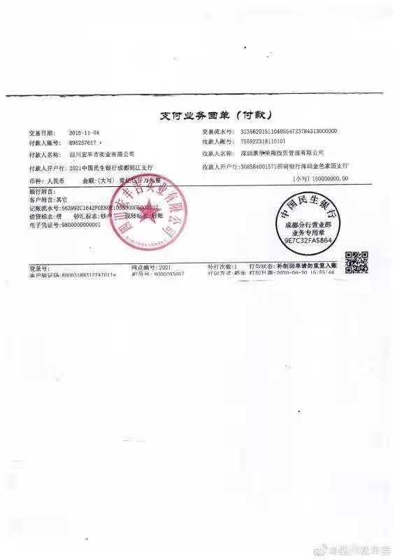 据四川宏丰吉新闻发言人回应,“为了保护宏丰吉作为债权人的合法利益,更要保护广大股民的利益,宏丰吉已向证监会上交了相关举报材料”。