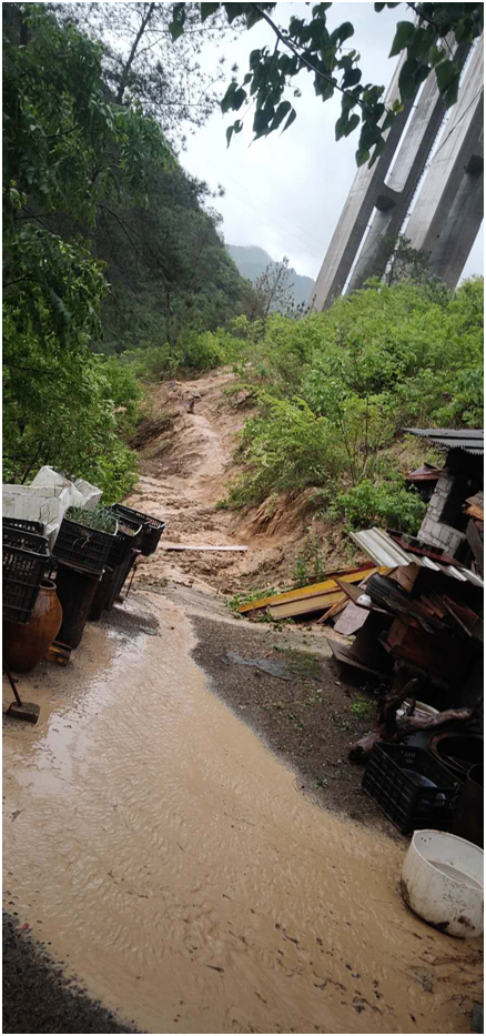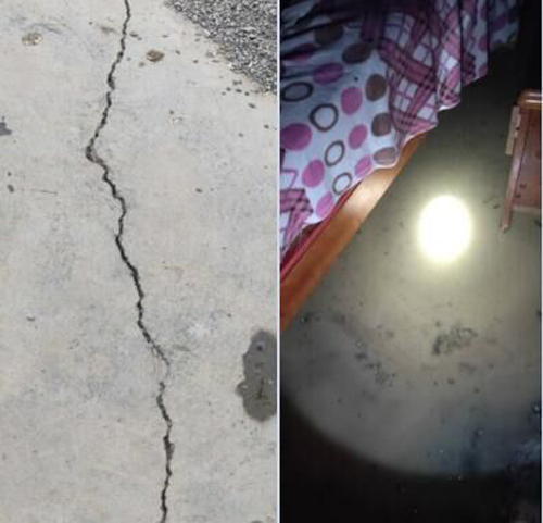 2018年以来,我多次找过施工方都未能解决。多次找过当地有关部门帮我们协调,也没有结果。2019年,施工方在弃土场周围修建了一个小水沟。当时我们给施工方说水沟修的太小了,可是他们不理。就在2019年4月份,下了半个小时大雨,突发洪水,水流直冲我房屋,造成了无法居住。晚上8点的时候,施工方叫我们去街上宋海酒店住了一晚上后就不管不问。洪水过后地基很不稳定,房屋可能已经无法修复,右面的门前处也被洪水冲垮塌。我们一直在找当地的高健办,给他们说安全隐患很大,他们却不理,他们就说房屋的问题就走炮损,给12600块钱我自己修补。他们就说爱要不要,不要算了。