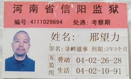 2018年2月,河南维权人士邢望力因到北京治病,被以“寻衅滋事”罪名冤判两年三个月,在信阳监狱待了一年多时间。于今年5月26日出狱。